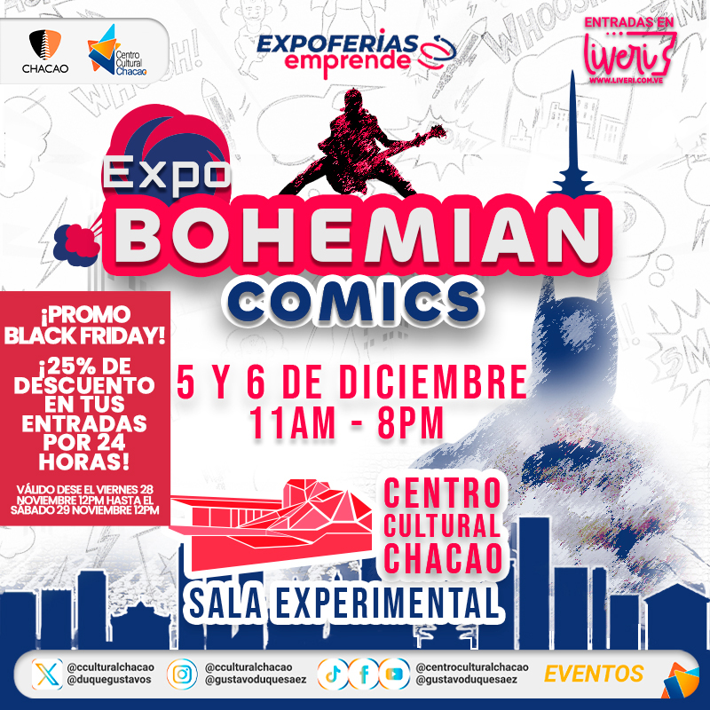 Nos complace en presentarles e invitarles a la gran exposición del mundo Comics y Anime del Centro Cultural Chacao, icono cultural y artístico donde se realizan los mejores espectáculos culturales de la ciudad. Dirigido al gran mundo Comics, Anime y Gamers, espectáculo con extraordinarias presentaciones y premiaciones para los participantes, durante toda la jornada.