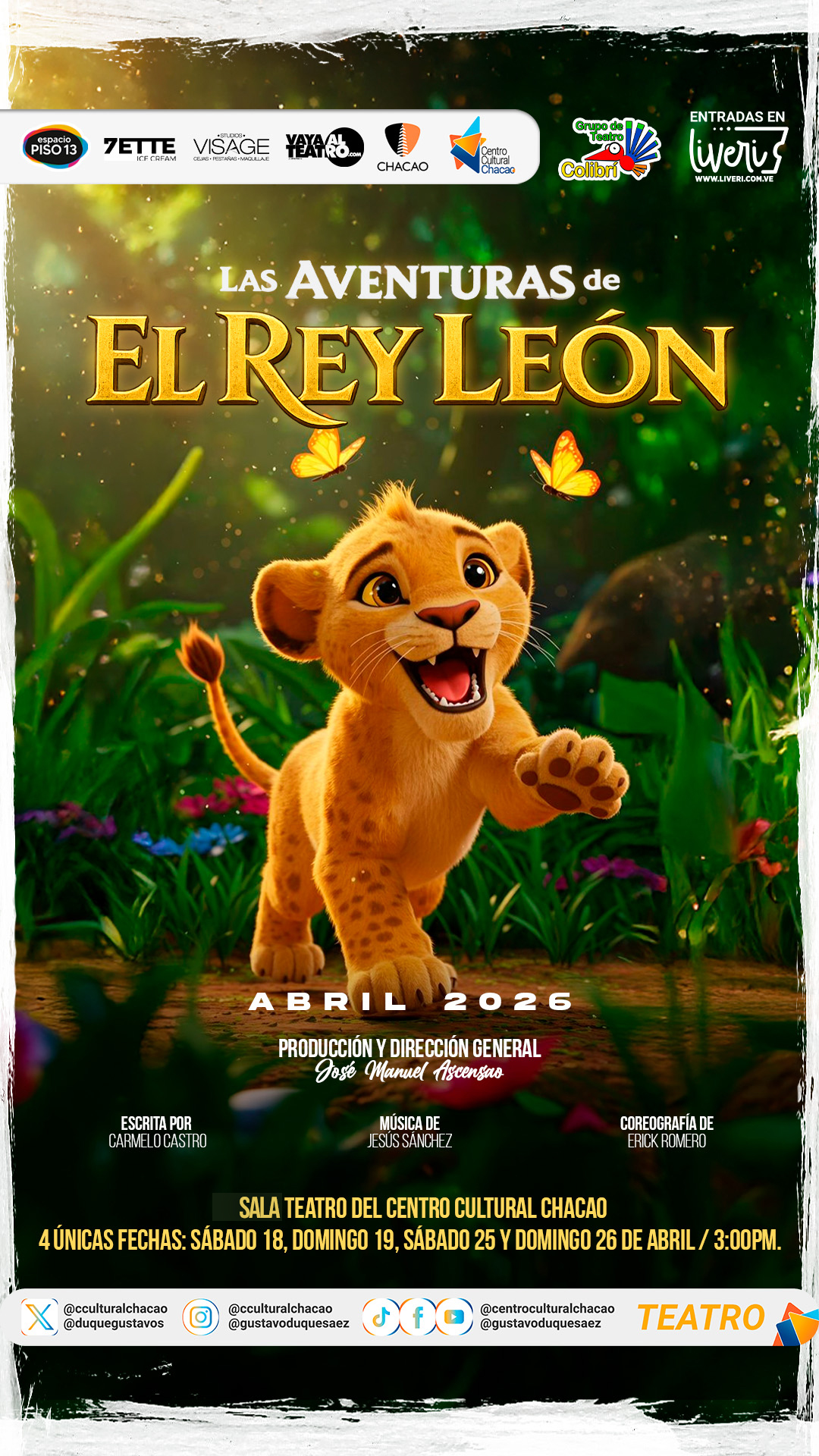 Original de: Rosa Clemente Dirección: Andreina Álvarez y Juan Carlos Duque Producción General: Daniel Espinoza Audrines Participación especial: Alexxey Córdova