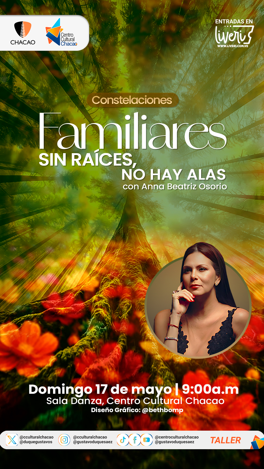 TALLER CONSTELACIONES FAMILIARES “SIN RAÍCES NO HAY ALAS»: Sesión Grupal de Constelaciones Familiares Encuentro de Constelaciones Familiares Domingo, 19 de abril de 2026 CONSTELACIONES FAMILIARES «Sin Raíces no hay Alas» ¿Sientes que repites historias que no te pertenecen? Muchas veces, los bloqueos que enfrentamos hoy tienen su origen en los hilos invisibles de nuestro árbol genealógico. Este taller es una invitación a mirar con amor nuestro sistema familiar para honrar nuestro origen. Al reconocer y ordenar nuestras raíces, liberamos las cargas que nos detienen, permitiéndonos finalmente desplegar las alas hacia nuestro propio destino. Un espacio para sanar el pasado y caminar con ligereza hacia el futuro. Si quieres constelarte ese día comunícate con nosotros a través del correo constelaciones.familiares.7@gmail.com Te esperamos!!! **Llevar ropa cómoda**