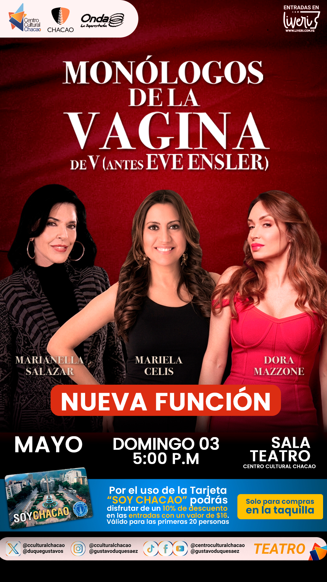 Acompáñanos el próximo sábado 16 de mayo de 2026, a las 9:00 p.m., en la Sala Experimental del Centro Cultural Chacao.