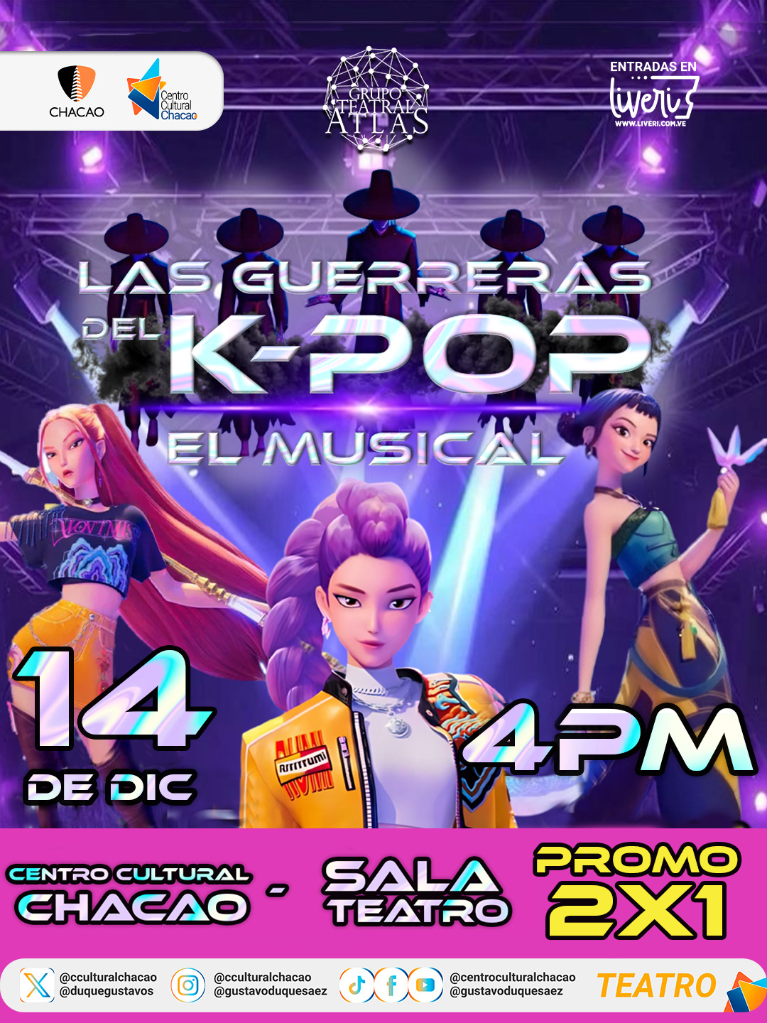 La energía del pop coreano, coreografías impactantes y una historia que atrapa, se fusionan el próximo domingo 14 de diciembre en la Sala Teatro del Centro Cultural Chacao. A las 04:00 p.m., el telón se levantará para presentar «Las Guerreras del K-Pop, El Musical», una propuesta escénica fresca dirigida por Dreiser Bandera.