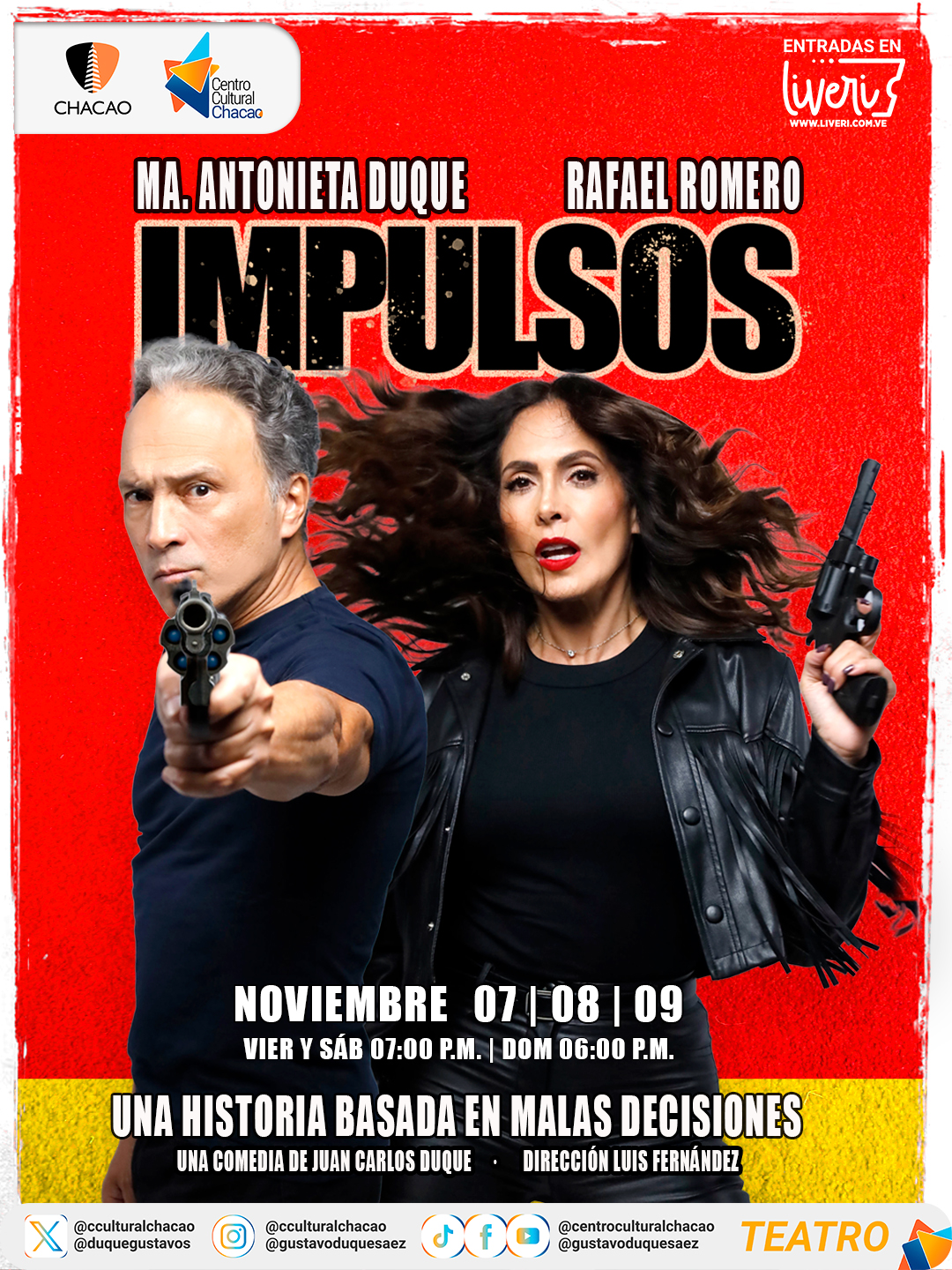 Prepárate para una comedia diferente que te mantendrá al borde del asiento. Este 07, 08 y 09 de noviembre llega al Centro Cultural Chacao la obra «IMPULSOS», un texto escrito por Juan Carlos Duque que demuestra que, a veces, las peores decisiones nos llevan a los encuentros más inesperados.