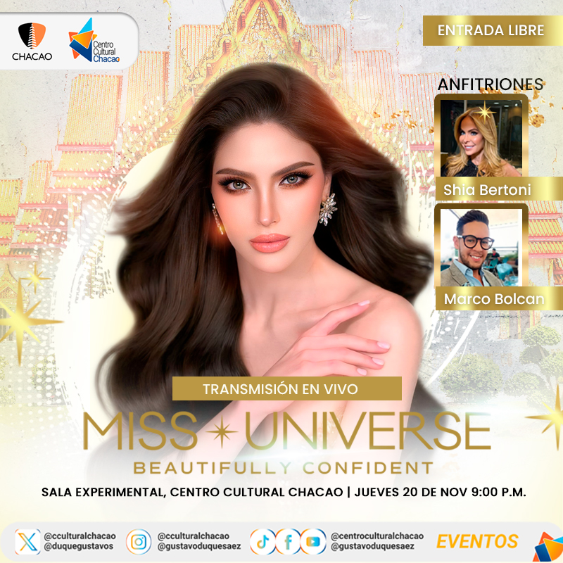 EL CENTRO CULTURAL CHACAO TE INVITA A VIVIR LA ELECCIÓN DE MISS UNIVERSO 2025 EN PANTALLA GRANDE ¡VENEZUELA UNIDA POR LA CORONA! Caracas, 20 de noviembre de 2025. El Centro Cultural Chacao extiende una cordial invitación al público para reunirse y apoyar con fervor a nuestra hermosa Stephany Abasali, nuestra representante en el 74a edición del Miss Universo, […]