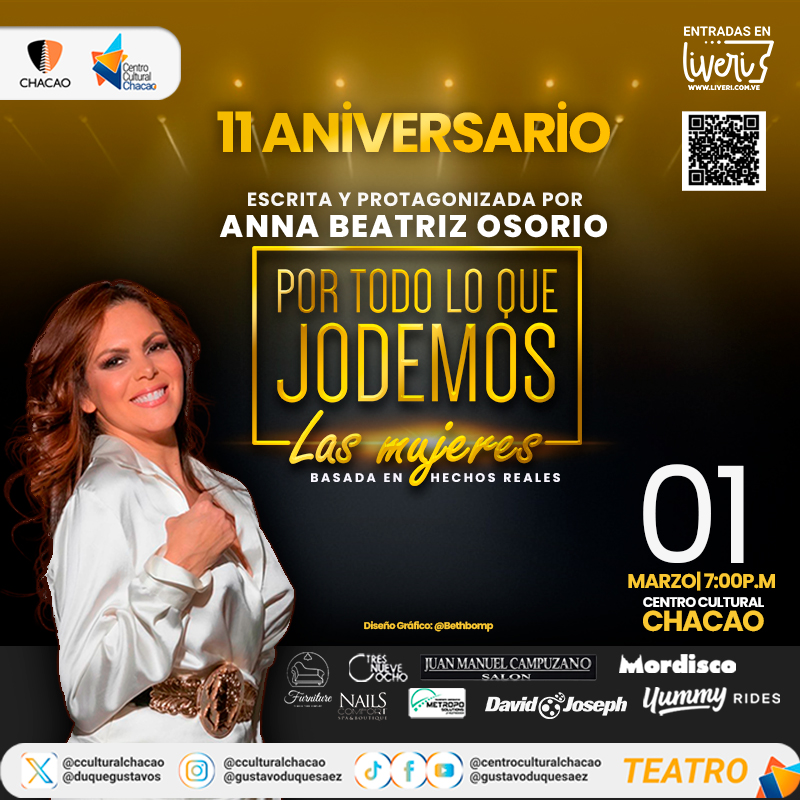 Anna Beatriz Osorio celebra 11 años de éxito con el monólogo “Por todo lo que jodemos las mujeres” en el Centro Cultural Chacao CARACAS – Tras conquistar las tablas colombianas durante una década, la reconocida actriz venezolana Anna Beatriz Osorio regresa a su tierra natal para presentar su irreverente y divertido monólogo “Por todo lo […]