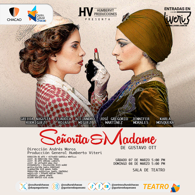 La legendaria rivalidad de «Señorita & Madame» llega a la Sala Teatro del Centro Cultural Chacao este 7 y 8 de marzo La emblemática obra de Gustavo Ott, «Señorita & Madame», se presentará en una ambiciosa puesta en escena en la Sala Teatro del Centro Cultural Chacao el próximo sábado 7 y domingo 8 de […]