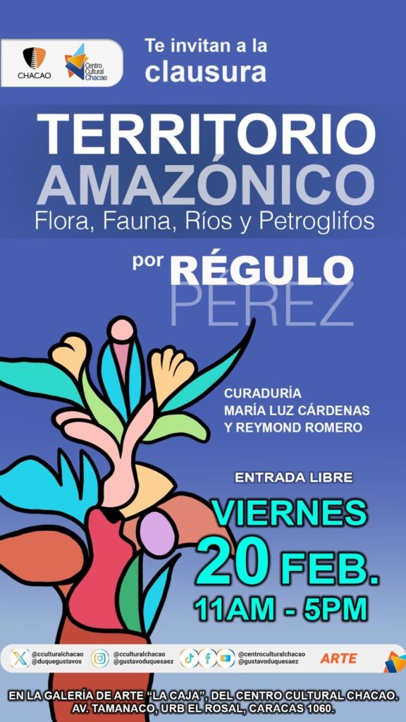 Chacao despide la exposición “Territorio Amazónico” de Régulo Pérez Tras más de 2000 visitantes Chacao despide la exposición “Territorio Amazónico” de Régulo Pérez (Chacao, 18.02.2026) Hoy viernes 20 de febrero, clausura la exitosa exposición “Territorio Amazónico: Flora, Fauna, Ríos y Petroglifos” del maestro Régulo Pérez, en La Caja, que es el recinto de las artes […]