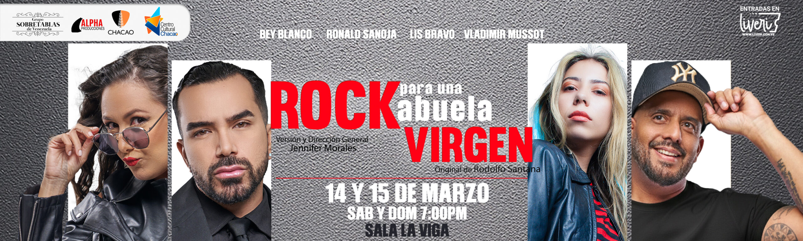 Tras su éxito en numerosos remontajes, siendo este la 6ta temporada regresa repotenciado en sus única dos funciones sábado 14 y domingo 15 de marzo a las 7:00 p.m. una versión de Jennifer Morales: «Rock para una abuela virgen», basada en la pieza teatral de nuestro maestro Rodolfo Santana, dramaturgo venezolano.